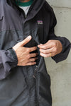 軽く薄いナイロンリップストップ生地で、この時代の先駆けだった止水ZIP、赤と黄のリフレティブコードなど