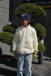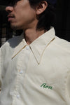 スナップボタンとシャツ襟の組み合わせは、60年代以降広がったチームジャケットらしいシンプルな構造。