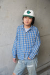 落ち着いたらモノトーンを軸に青が映える、普遍的な青チェック