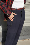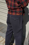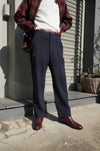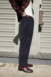 生地とシャープなテーパードの相性が美しいパンツだ。