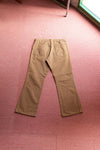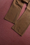 生地のタフさとシルエット上品さが合わさった、存在感のあるフレアパンツだ。