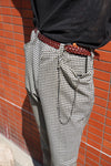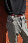 白と黒の細かなギンガムチェックに、美しいテーパードのシルエット。