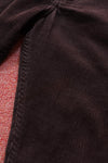 濃いブラウンの起毛は光の当たり方よって艶を生み出し、動きに合わせて濃淡が生まれ、スタイルに立体感が出る。