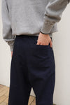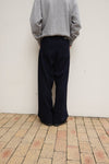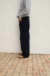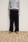 目を凝らして見るとわかる青いインディゴ綿と、艶のある黒ウールの奥行ある風合いが美しい。