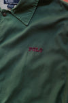 深いグリーンのボディの胸に、洒落た紺赤でPOLOフォントを刺繍。