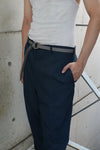 ワタリ幅の広いストレートシルエット、流行り廃りなくニュートラルに履ける定番の形。