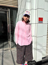 トレンド感のある寒色と暖色の組み合わせで、デニムと共に羽織る。