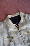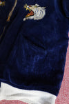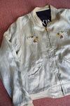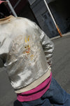 裏は真っ白に金刺繍で胸に虎、背には龍の燻し銀な迫力のあるデザイン。