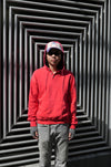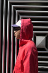 春の陽気に、赤が抜けたコーラルカラーがよく映える。