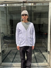 白じゃ無い淡いパープルがとっても洒落ている春のお供になる、コットンニットだ。