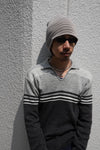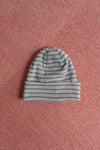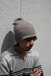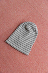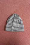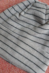 チャコールと鉛色の2色ボーダー。ピッチは細かく落ち着いたトーンで男女問わずにオススメだ。チノパンと頭で挟んでトーン合わせも今季はチャレンジしていきたい。